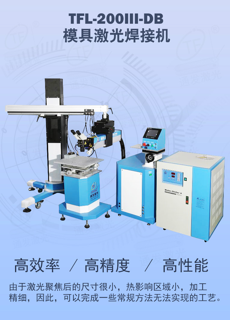 TFL-200Ⅲ-DB型模具激光焊機是通發激光公司在TFL-180Ⅲ的基礎進行了改良,采用通發自主研發的二代精密單燈電源為燈泵浦驅動電源,操作更方便。主機具備激光頭手搖升降與工作臺按鈕電動升降實現焊接不同厚度模具的激光焊加工。本款機型更適用于各類高精密注塑模具激光補焊,精密塑膠模具零件激光修補,塑膠模具鈹銅零件激光燒焊;可對模具使用過程中出現的磨損進行激光修復;對機械加工失誤、電火花加工失誤,模具減膠設計變更等需要對模具修改,起到關鍵的作用,可彌補應加工失誤造成的巨大損失。