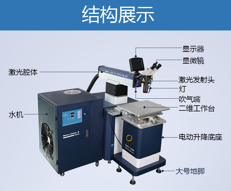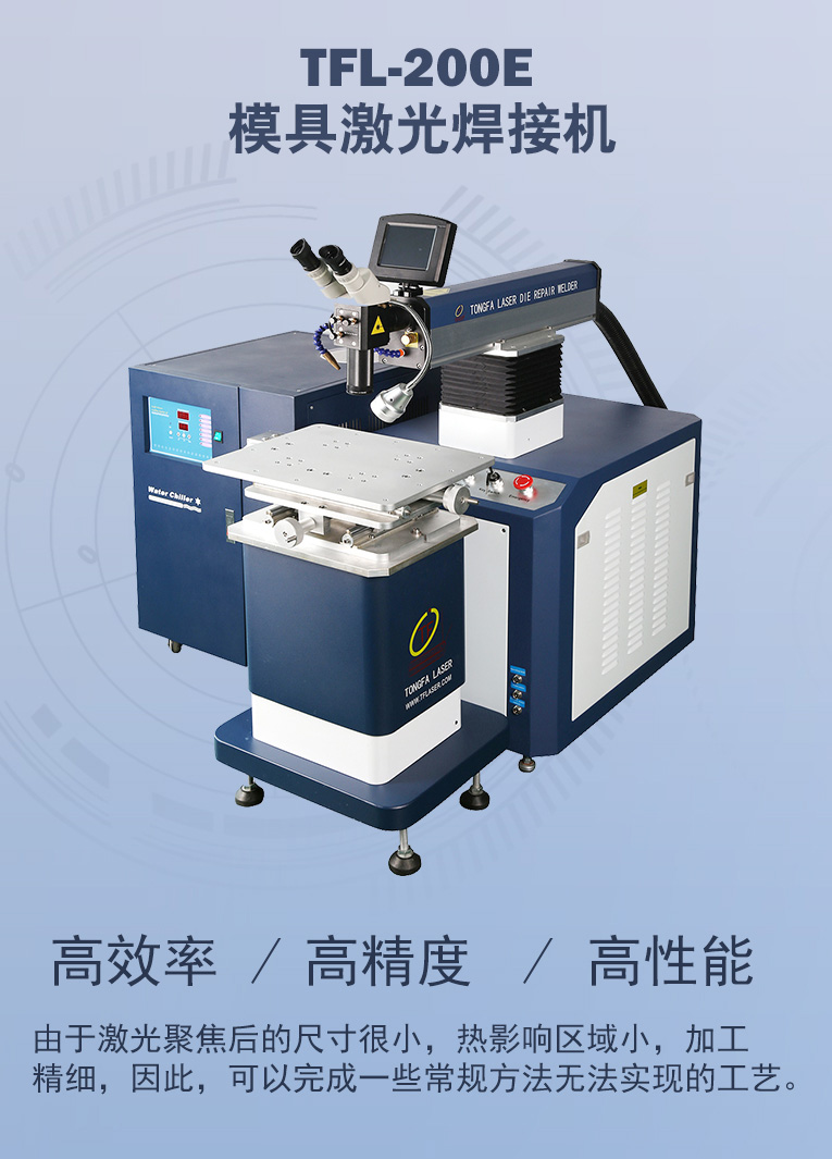出口型模具激光焊機是通發(fā)激光公司專門為出口國外客戶使用而設(shè)計的系列機型TFL-200E,適用于各類精密注塑模具、壓鑄模具等模具激光修補焊接;同時也適合鑄件沙孔激光修補、模具崩缺激光修復(fù)、過切加工等的激光修補;各類金屬結(jié)構(gòu)件、金銀首飾的激光焊接加工。